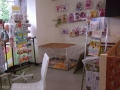 ウッドテラスのあるお店が目印です。トリミングの様子がガラス越しにご覧いただけます。 店内はわんちゃん用品がたくさん!トリミングのご褒美にいかがですか?