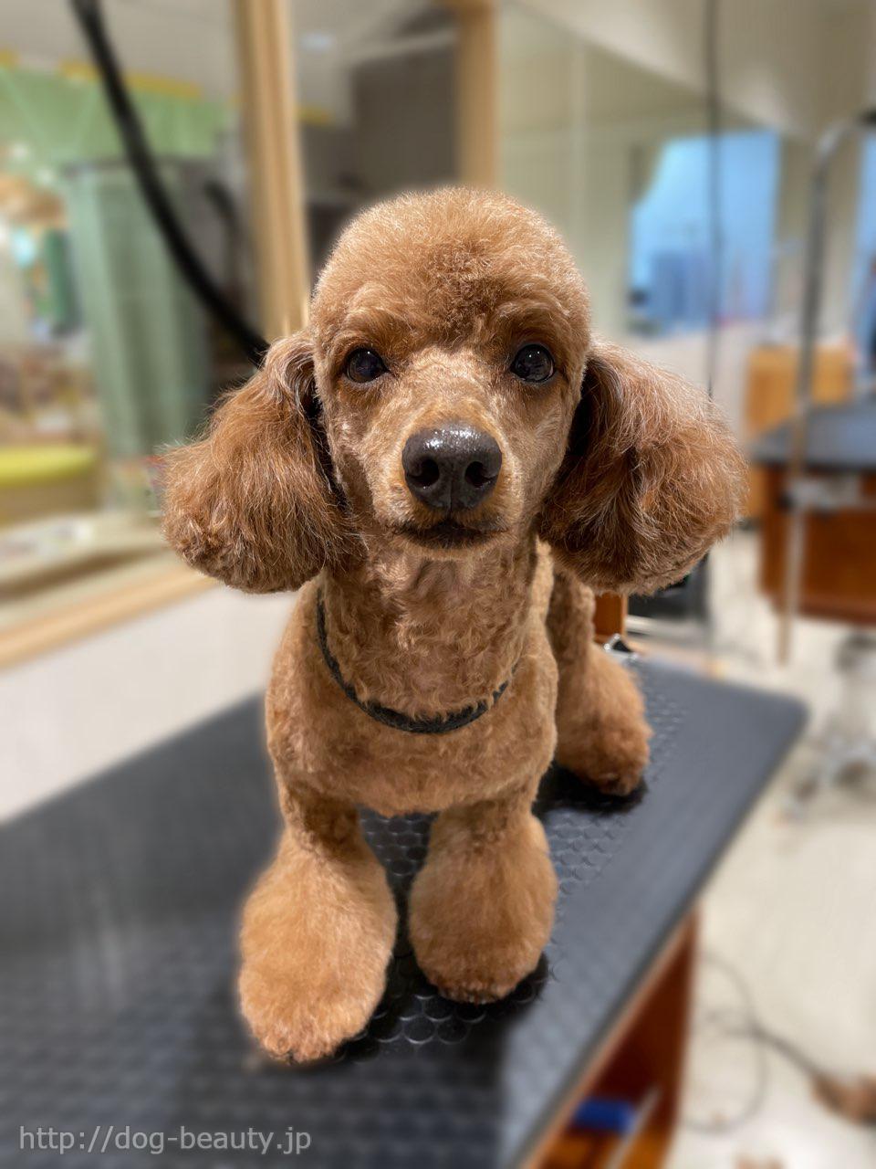 最近のトイプードルの主流の顔カットはテディベアカットですが、涙やけやよだれなどで汚れが付きやすいのが悩みどころ、顔バリでしたら汚れが取れやすくお手入れが楽ちんになります!また、カットのもちも良いのもおすすめポイントです♪
