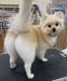 ポメラニアン・オールシザーカット♪ 全体に丸い感じに仕上げました♪ 汚れやすい、胸、アンダー、足、お尻はスッキリとカットしました♪ |