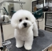 ビションフリーゼの耳だしまん丸カット まん丸なお顔にぴょこんと耳を出して可愛い雰囲気に仕上げました。 元気いっぱいなとぅぶくんが過ごしやすい様に体は15mm、足は21mmのバリカンでスッキリカットしました |