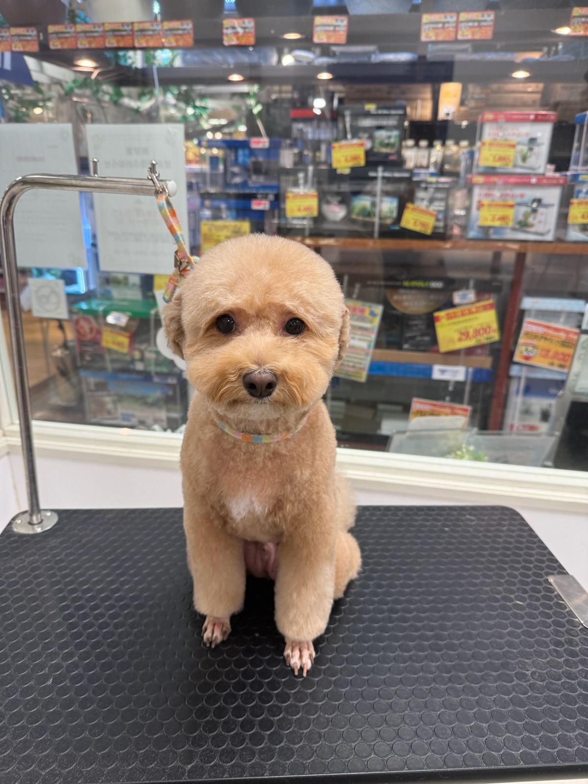 ぷりんちゃんすっきりスタイル♪ チワワn×プードルMIX 全身6mmバリカンで夏仕様のカットです!お顔はすっきりめ、口周りは丸く可愛い雰囲気になるよう仕上げています♪お耳は短めで、尻尾はふんわりめにカットしています! |