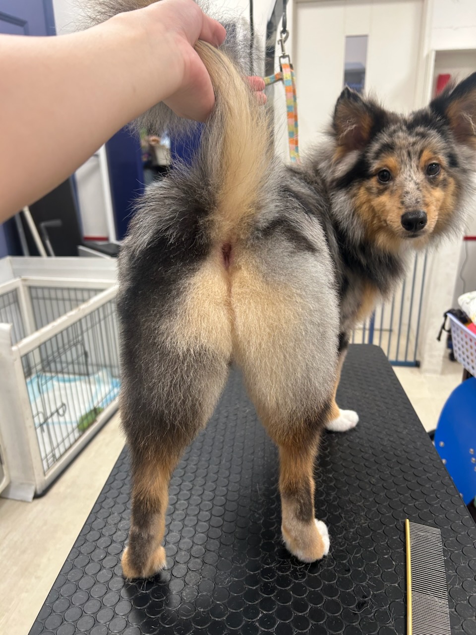 こいぬちゃん風カットスタイル 毛が柔らかいので、お手入れがし易いように少しスッキリめに。お顔とお耳は、子犬っぽく見えるように可愛くカットしました。 |