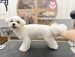 マルチーズの小顔でキュートなベルボトムカット♡ 可愛いお顔立ちが引き立つ、キュートな小顔カットスタイル♡ ボディはサマーカットより長めの6mmクリッパー仕上げ 足はメリハリのベルボトムカットに仕上げました♡ |