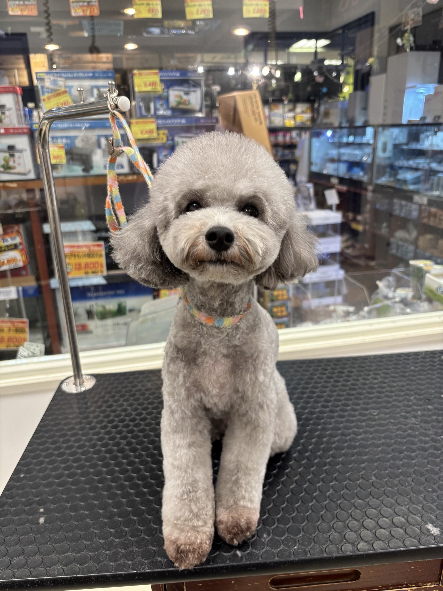 プードルちゃん王道のテディカット!全体的にすっきりめのカットでトリミング後の持ちのよさ、お手入れのしやすさも考えてカットしました!しっぽも汚れが付きにくいようにライオンさんのようなカットにしています!