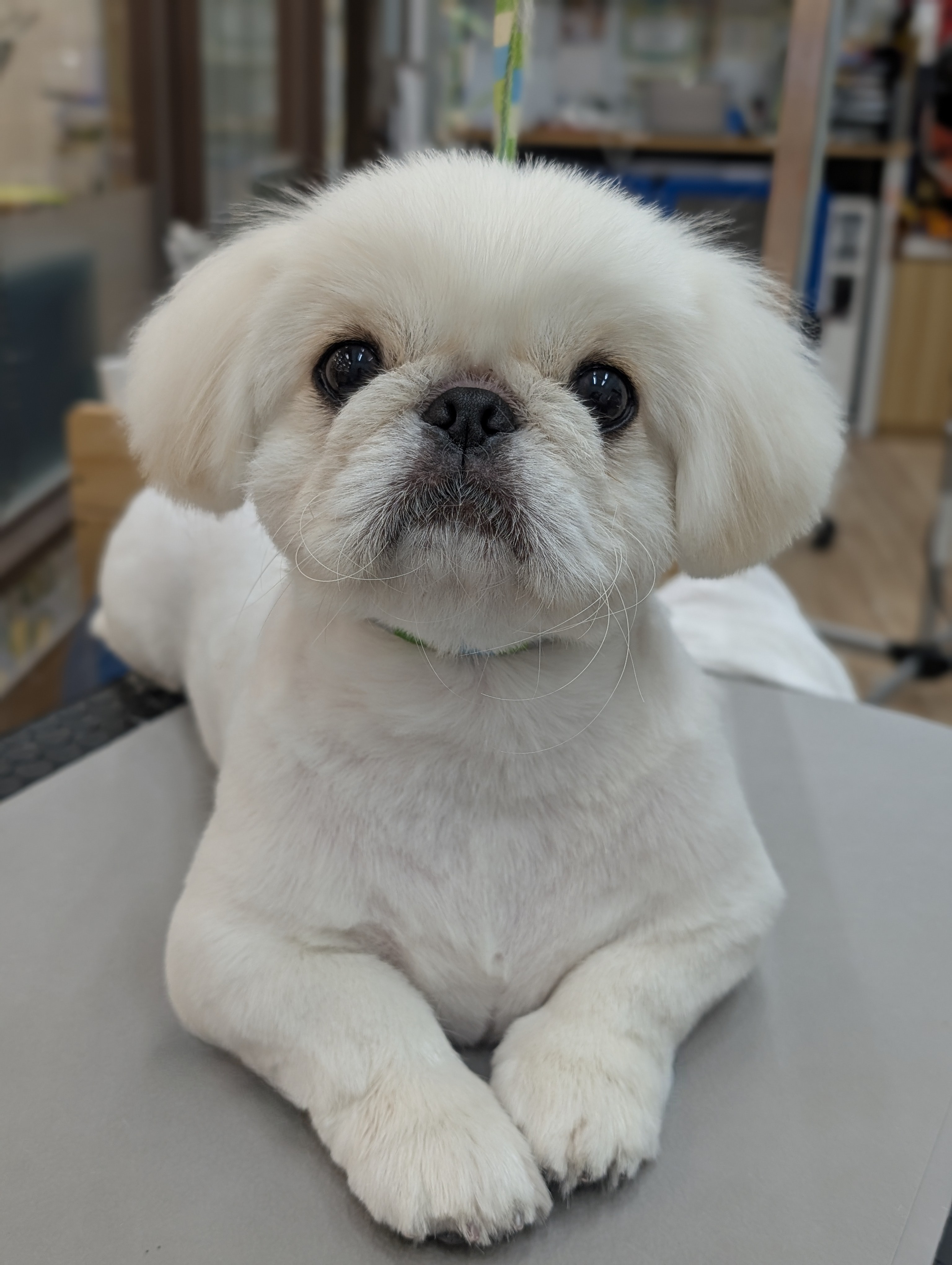 お顔も尻尾もまん丸カット 体はお手入れのしやすさ重視でスッキリに、 お顔、お耳、しっぽは 可愛らしい印象になるよう、 全てまん丸に仕上げました!! |