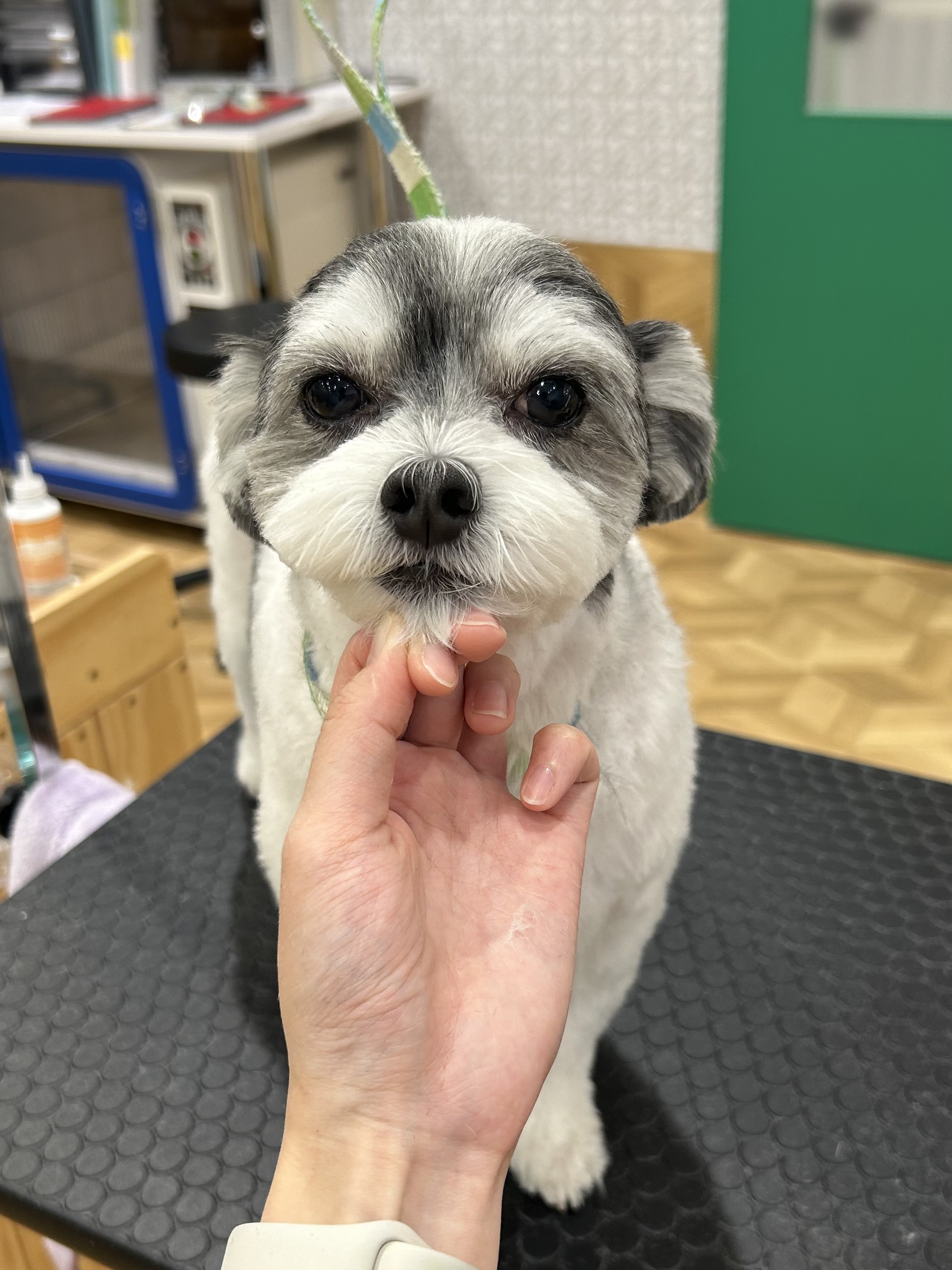 仔犬のベアカット チワワ×マルチーズMIXの仔犬ちゃんでパピー感を残したベアカットです。 体も19ミリでふんわり目に残して足も体に合わせてカットしました。 |