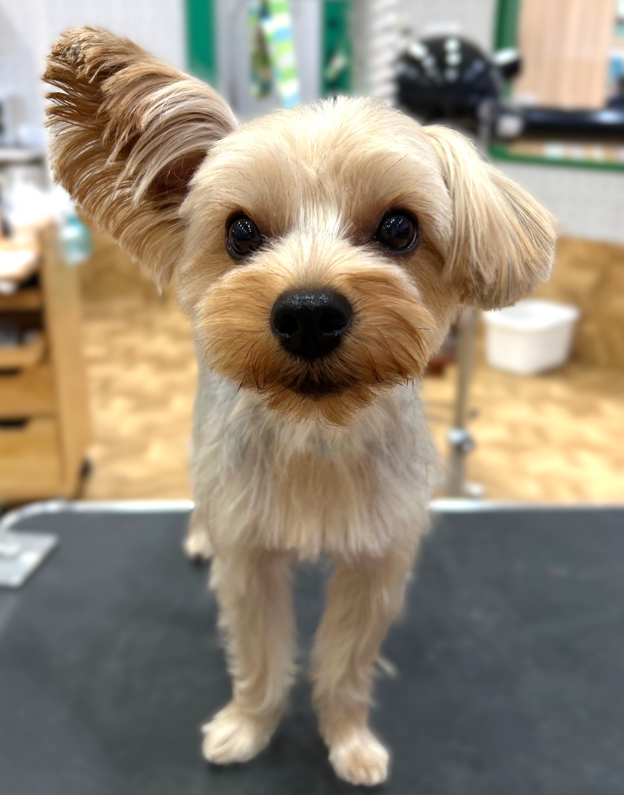 おてんば女子のキュートカット パピーなおてんばちゃこちゃんにいっぱい遊んでも汚れにくくモツレにくくお手入れしやく、たくさんあそんで貰えるように |