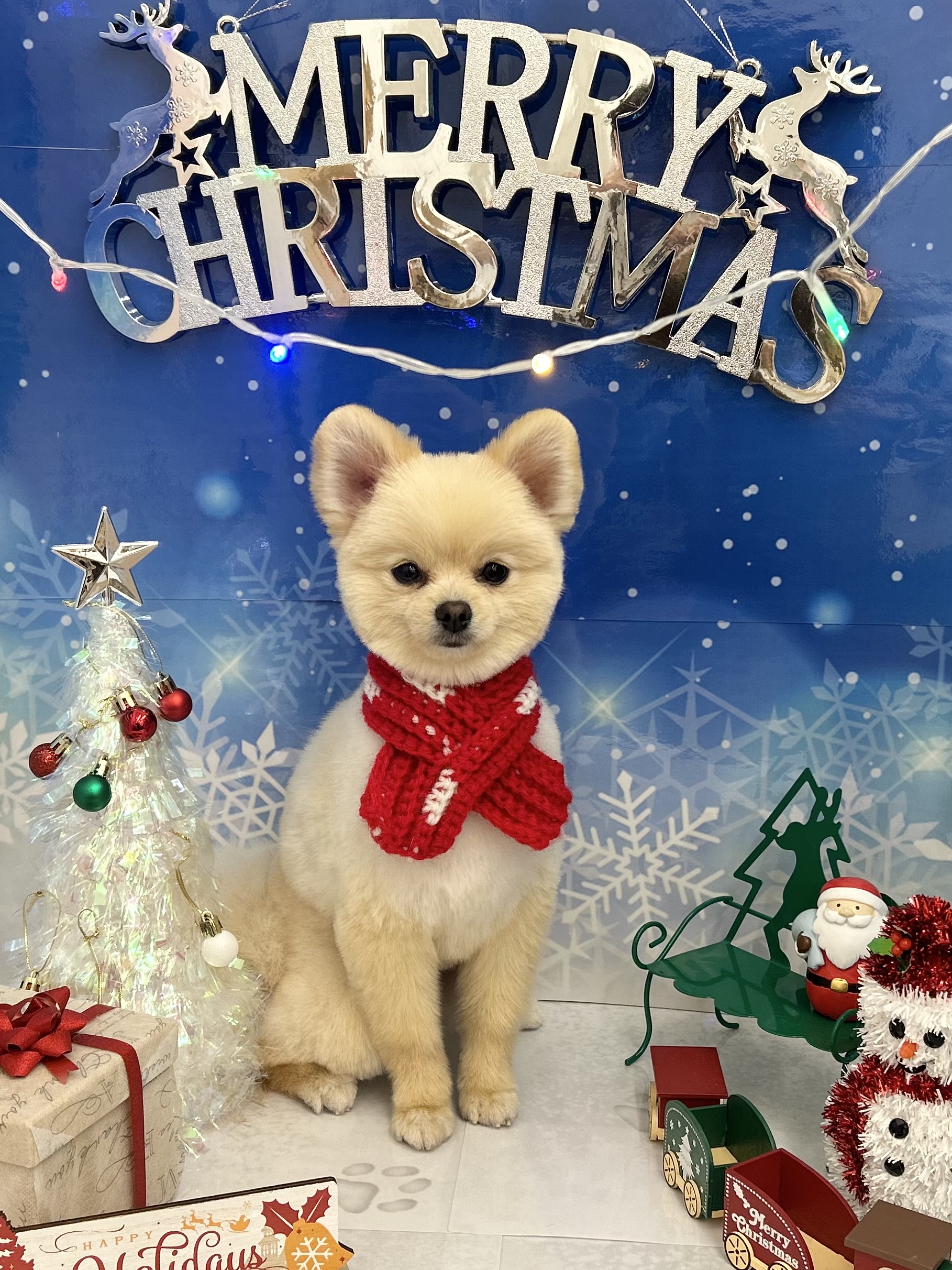 ぽむくんのまんまるカット☆ 全身鋏でふんわり丸くなるようにカットしました! お尻はまあるく、尻尾はそろえる感じで、お顔もまあるく仕上げました♪ |