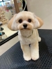 ふんわりビションカット 体19ミリ、足はハサミでふんわり、お手入れしやすいように足先はスッキリめに!お顔はビションちゃんらしく丸くカットしました♪ |