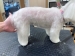 マルチーズのエレガントスタイル☆ 体はすっきりバリカンで足はボリュームのあるブーツスタイルです♪ お耳は女の子らしく長く残しています♪ |