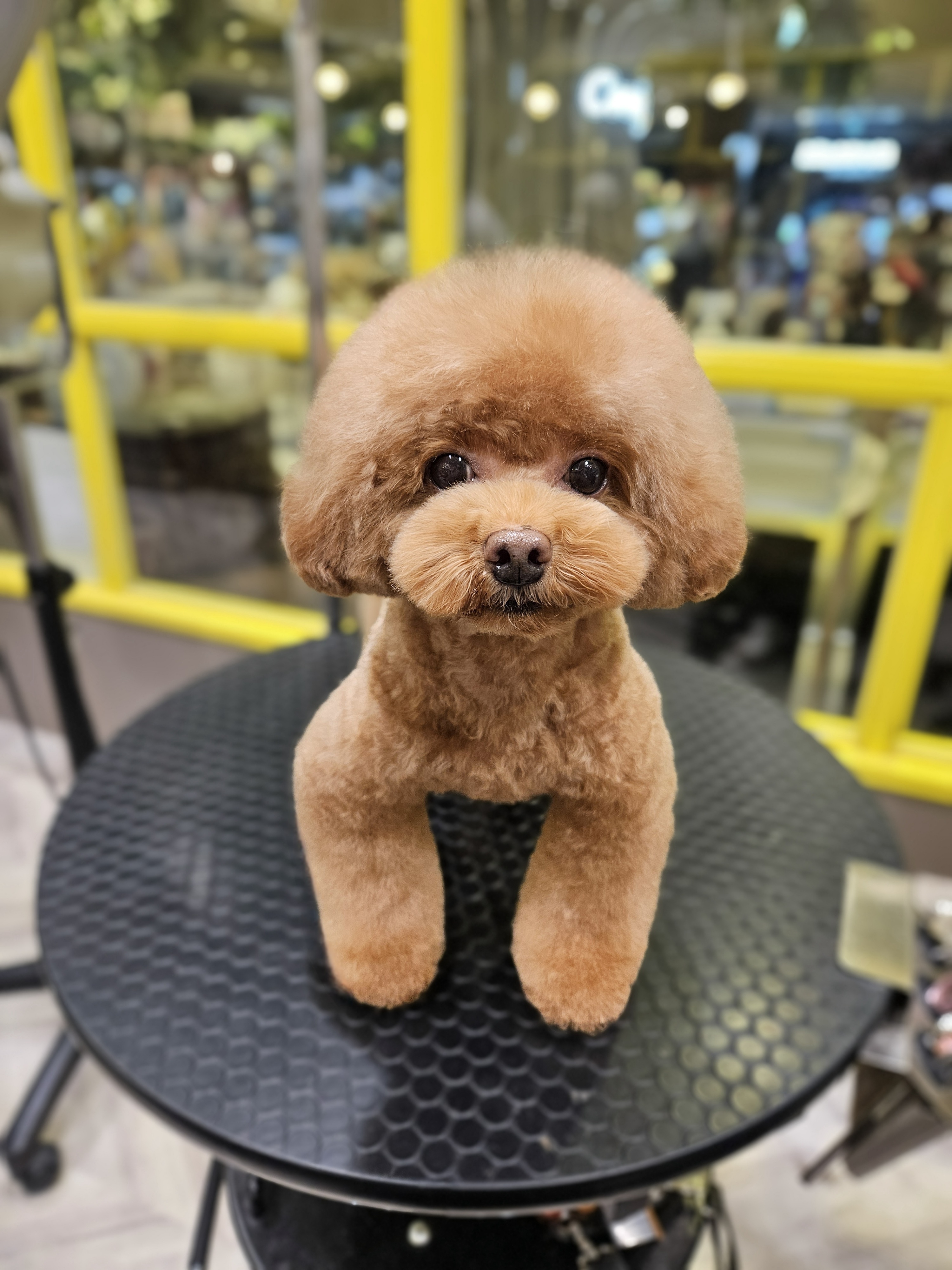 プードル きのこヘアー♪ 頭と耳をつなげてカット。 耳は長めに可愛く仕上げました☆ |