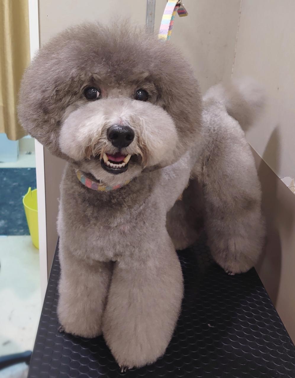 初カット 初めてのトリミング!テディベアカットとても似合ってました。 |
