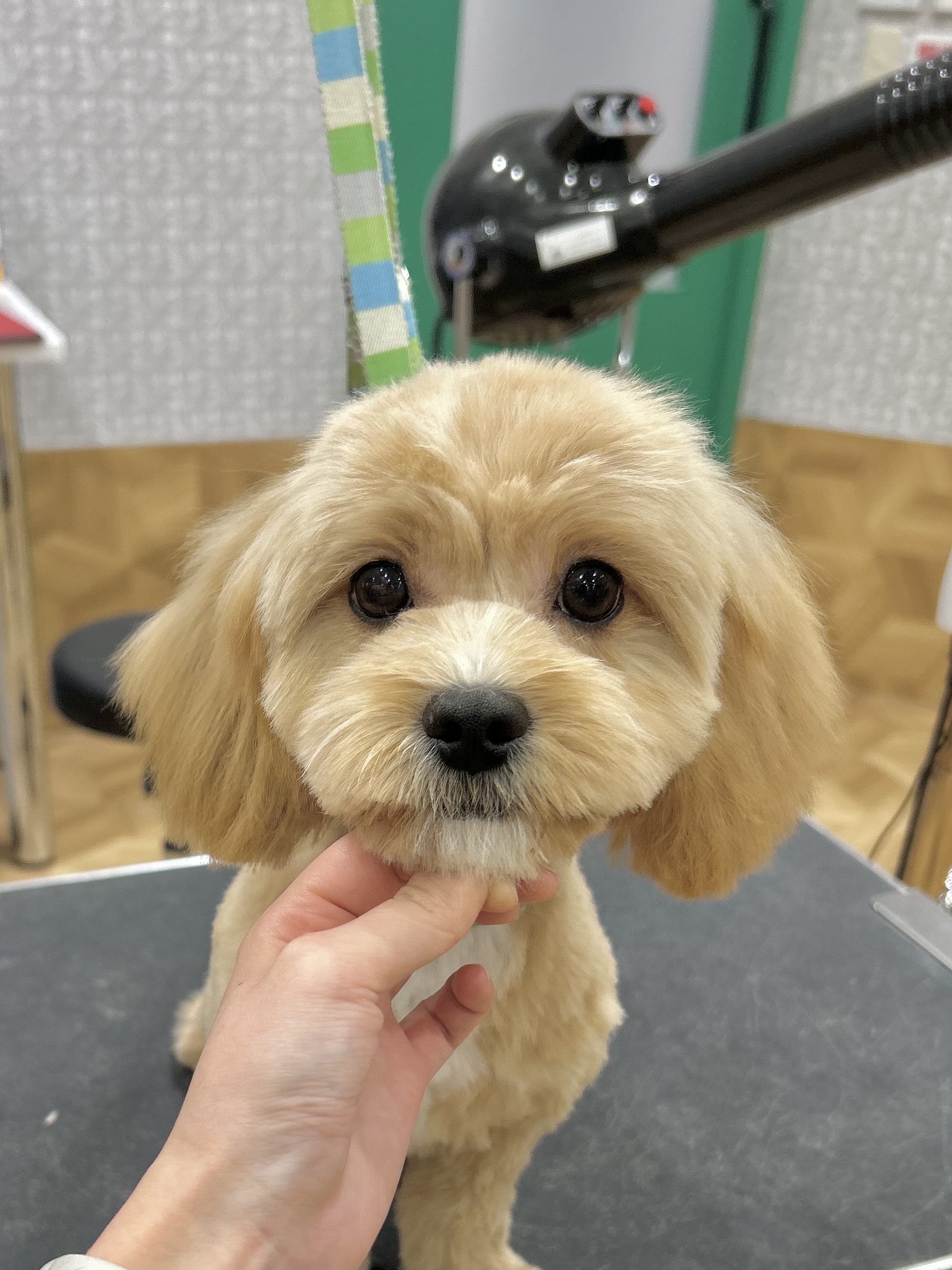 お顔まん丸カット お体とお耳はスッキリ短く、お手入れしやすいようにしています♪ 耳を刈ってお顔の丸さが強調されて、まん丸に仕上がります |