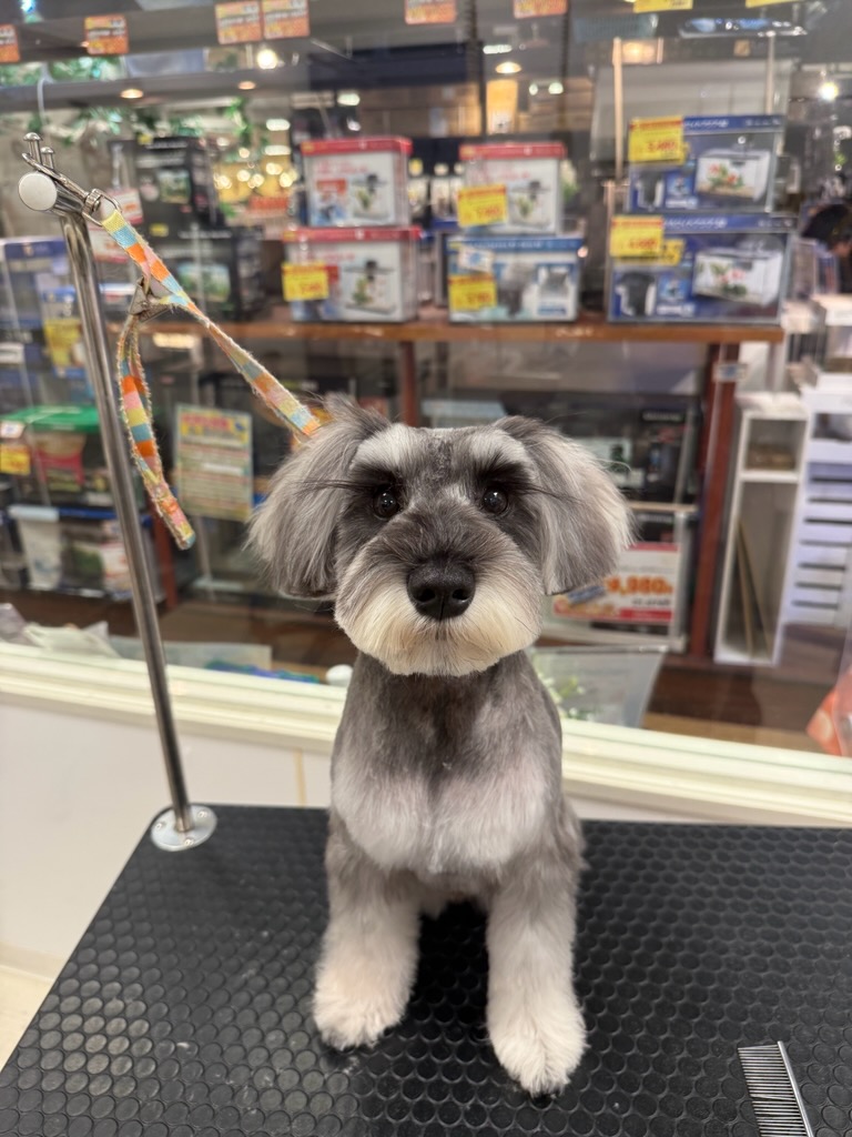 ガーリーシュナウザー☆ まつげを残して女子力UP☆☆ お耳もふんわりまわるく仕上げて 女の子らしくしています♪ |