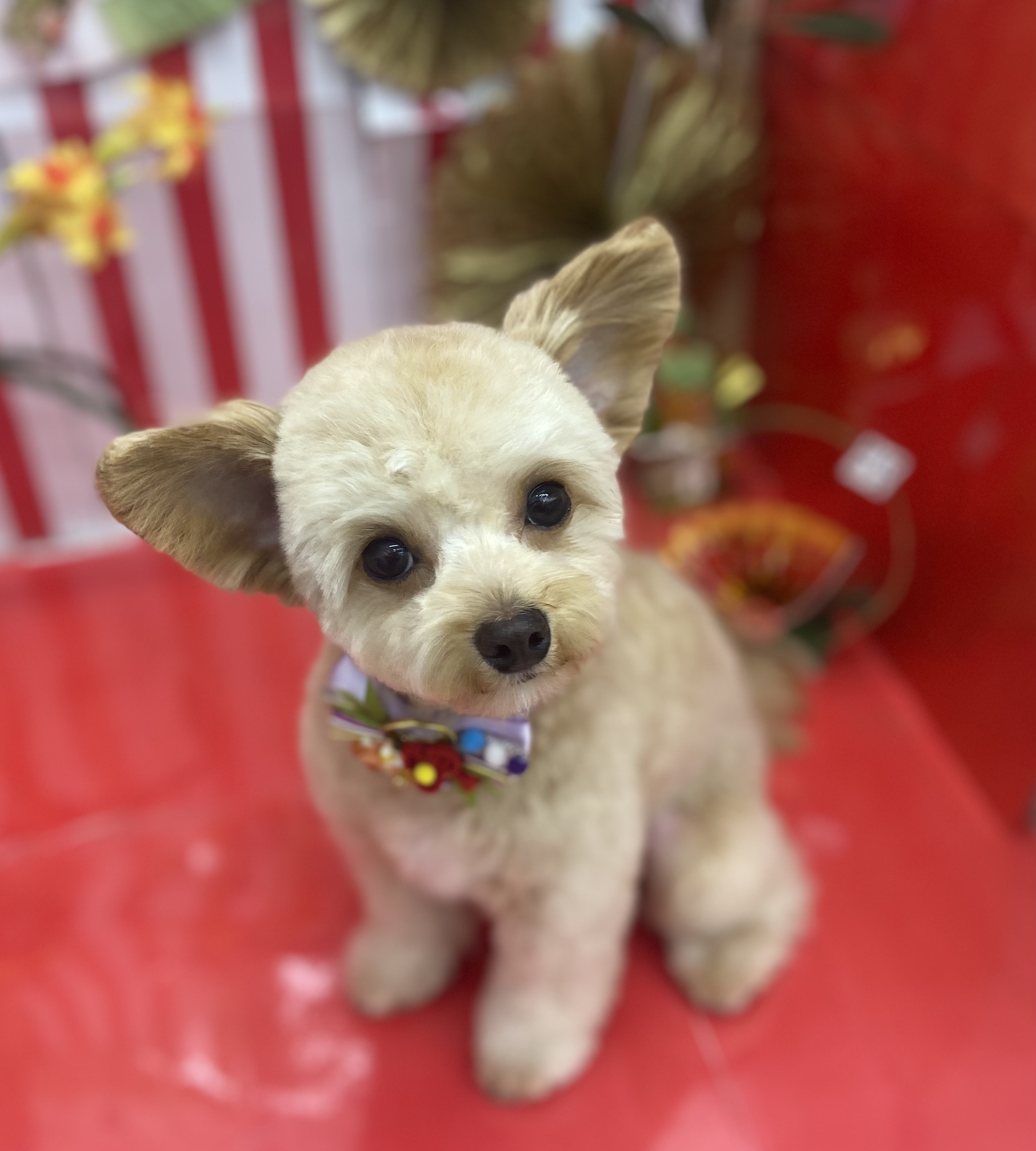 ポンポンスタイル マズルスッキリめのふんわりテディ 体は10mmで、足にはポンポンを付けました! 足先は2mm順刈りでお手入れしやすくしました! ふわふわスタイルがとっても似合いますね! |