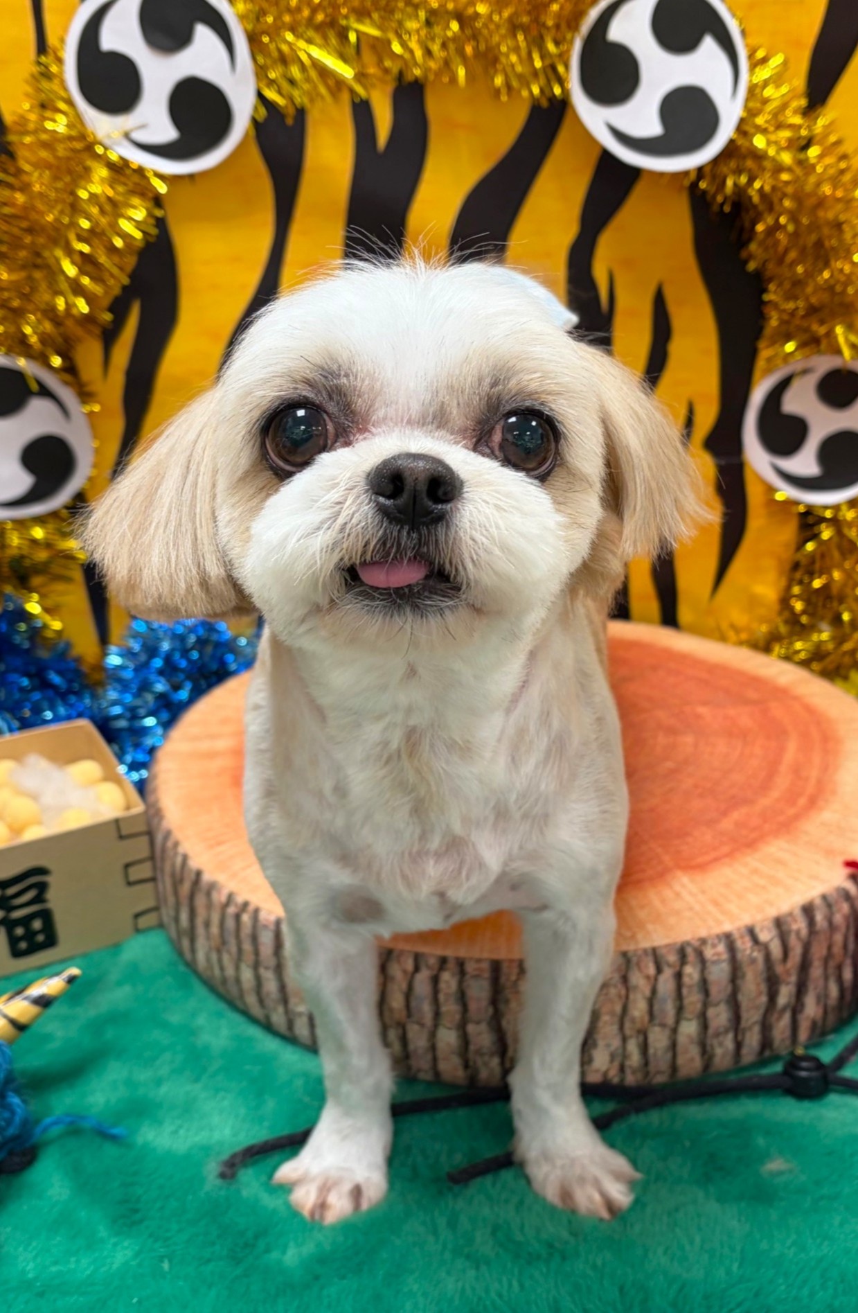 まるふわカット シーズーちゃんはすぐ目元が伸びてきちゃいますよね(><) そこで目元はスッキリしつつ、かわいくなるようにお顔全体は丸くカットしました。 |