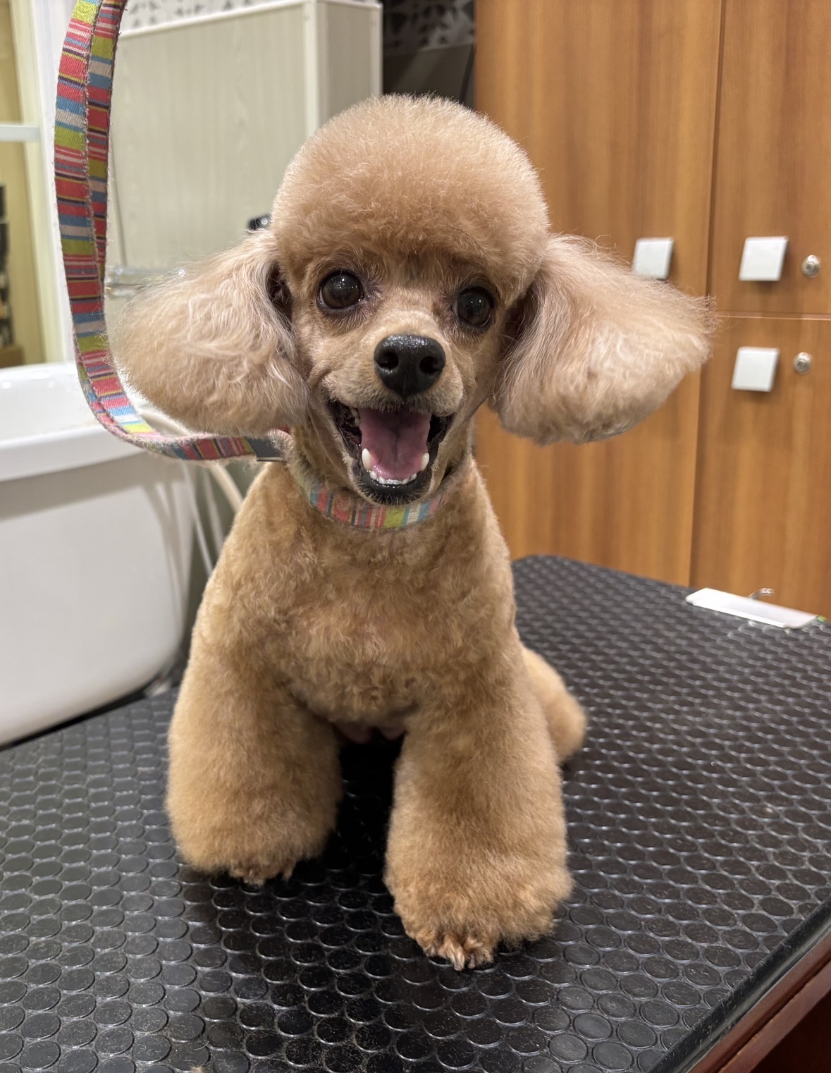 ふわもこパピーカット♪ まだ毛が柔らかい子犬ちゃんカット♪ 今だけのふんわり感を楽しんでいただくために 全体の毛足は長めに残し、 汚れやすい目元・口元・足先は 少しスッキリめに仕上げました☆ |