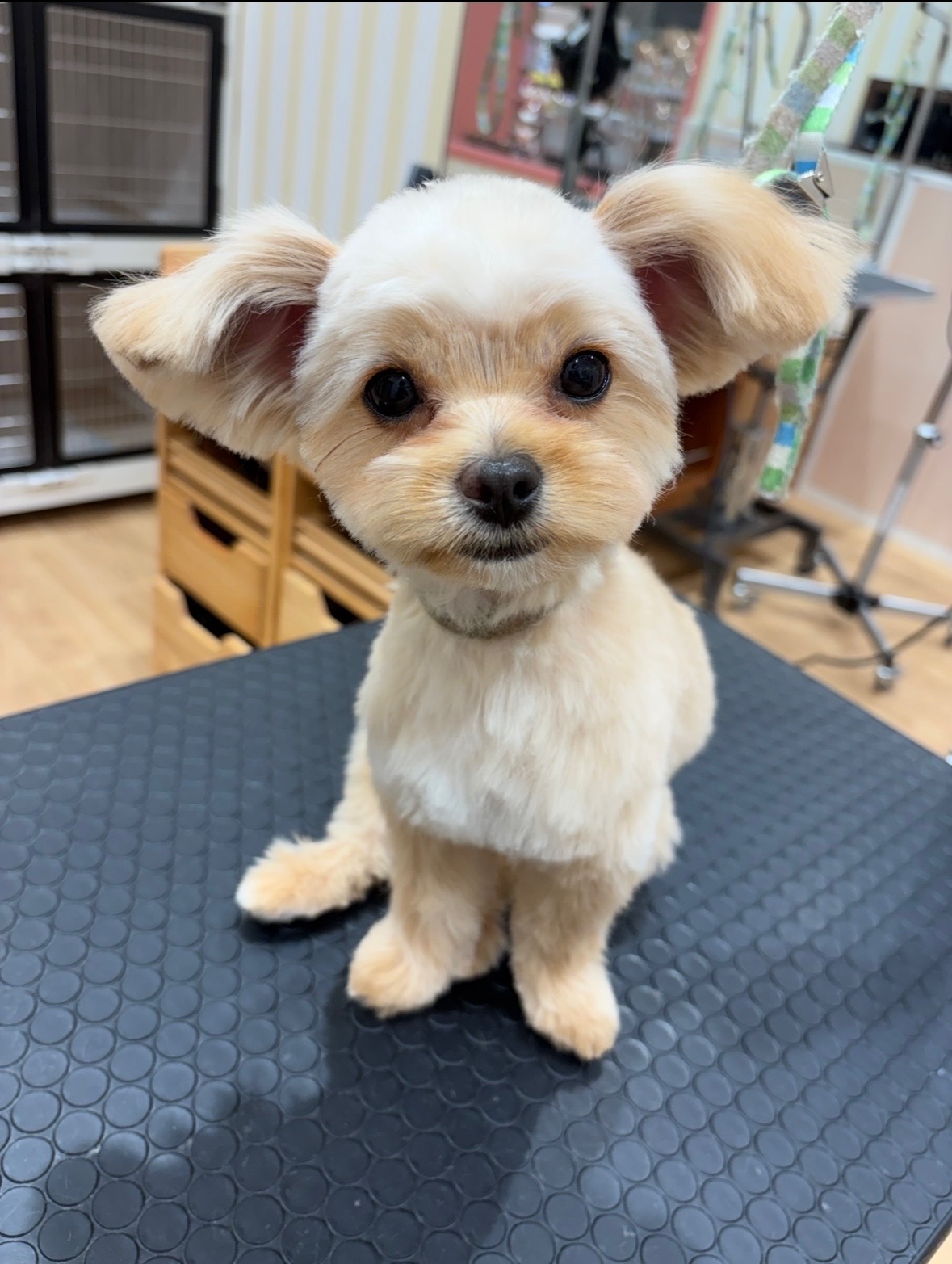 体は9ミリのバリカンでカットをし、足はハサミで少し短めにしました。お顔はスッキリしつつも丸めにカットをしてキュートなお顔立ちをよりキュートに引き立たせていただきました!短くもしたいし可愛いさも欲しい方におすすめのカットスタイルです。