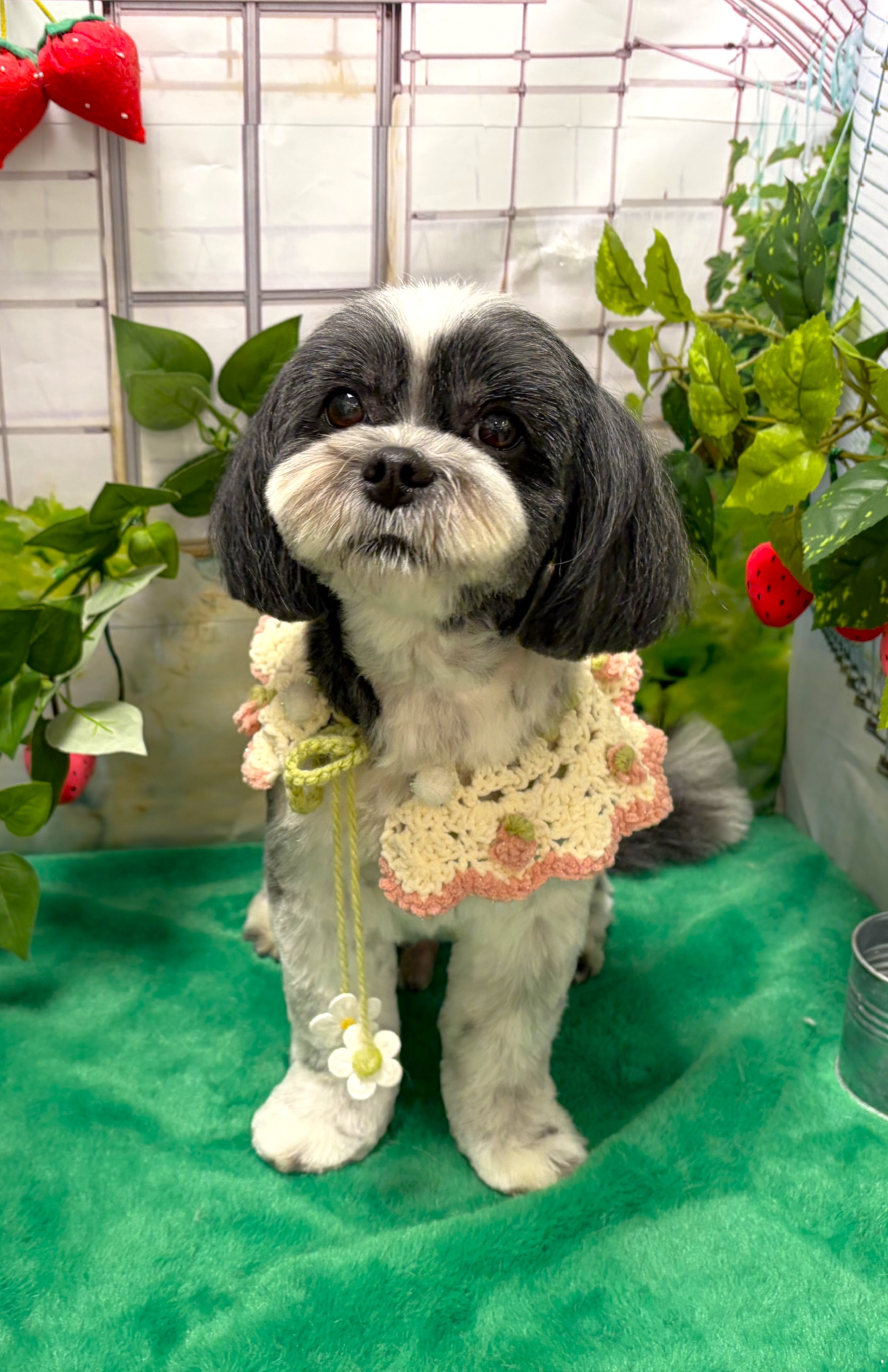 ほわほわ♪ナチュラル マシュくんはまだ仔犬ちゃんで、毛も柔らかく頭の上のほわほわとお耳、しっぽはそのままナチュラルに残し、体は6ミリで足はふんわりカットしました♪ 目元や口周りは汚れやすいので短くカットしています♪ |