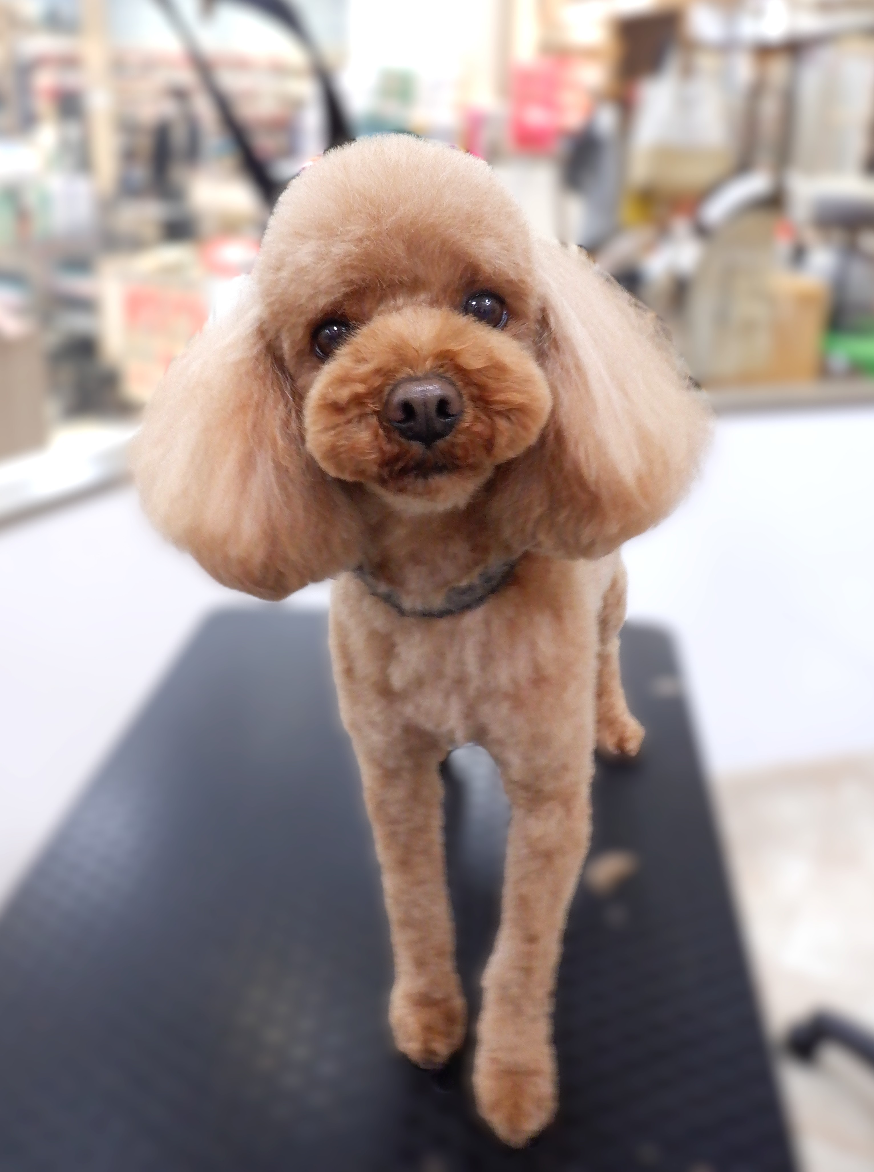 ニュアンスベア風カット ニュアンスベアカットより少しスッキリめに、でもふんわり感を残した仕上がりにしました♪ シルクパックでふわふわになりました♡ いつも元気いっぱいでとっても可愛いダイナちゃんです☆ |