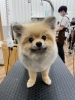 ポメサマー 体は10mmのバリカンでスッキリと、足は体に合わせてカットしています。 お尻は丸くプリティに! お顔は丸くカットしています! |