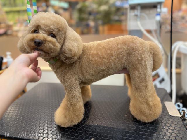 お顔と耳はまん丸にカットしました! 汚れやすい足先は2mmでスッキリし、 足先が隠れるようにコンパクトブーツカットで 可愛く仕上げました!