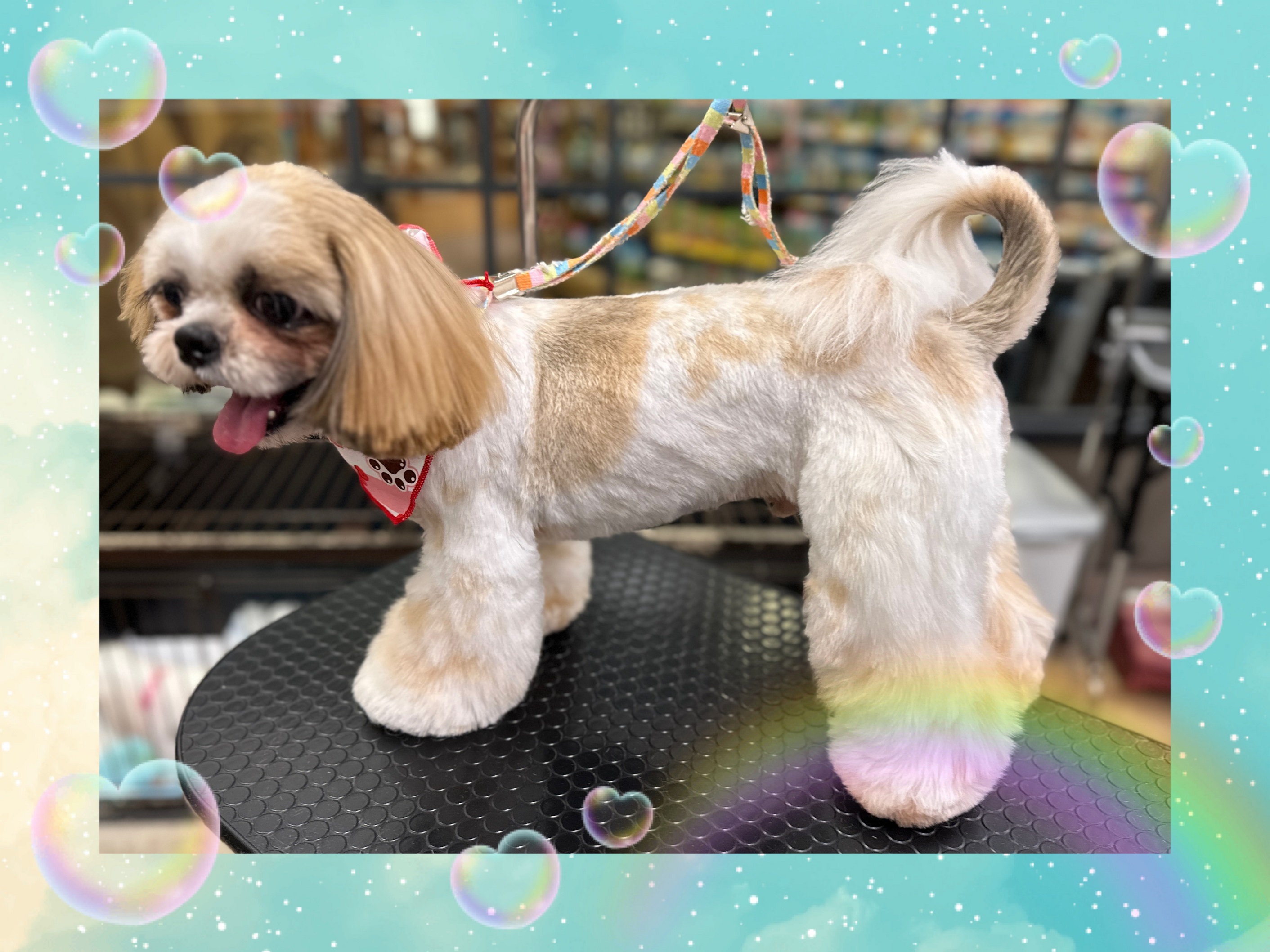 お顔はとてもスッキリにカットし、体は5ミリ、足はハサミでブーツカットでふんわりです♪しっぽはオシャレにライオンテールです!