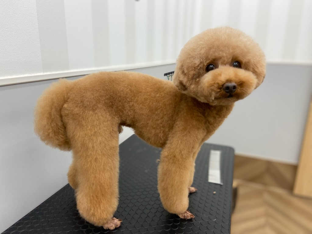 足先バリカンをする事によりお手入れが楽になります。お顔は頭と耳を繋げて丸く意識しました。