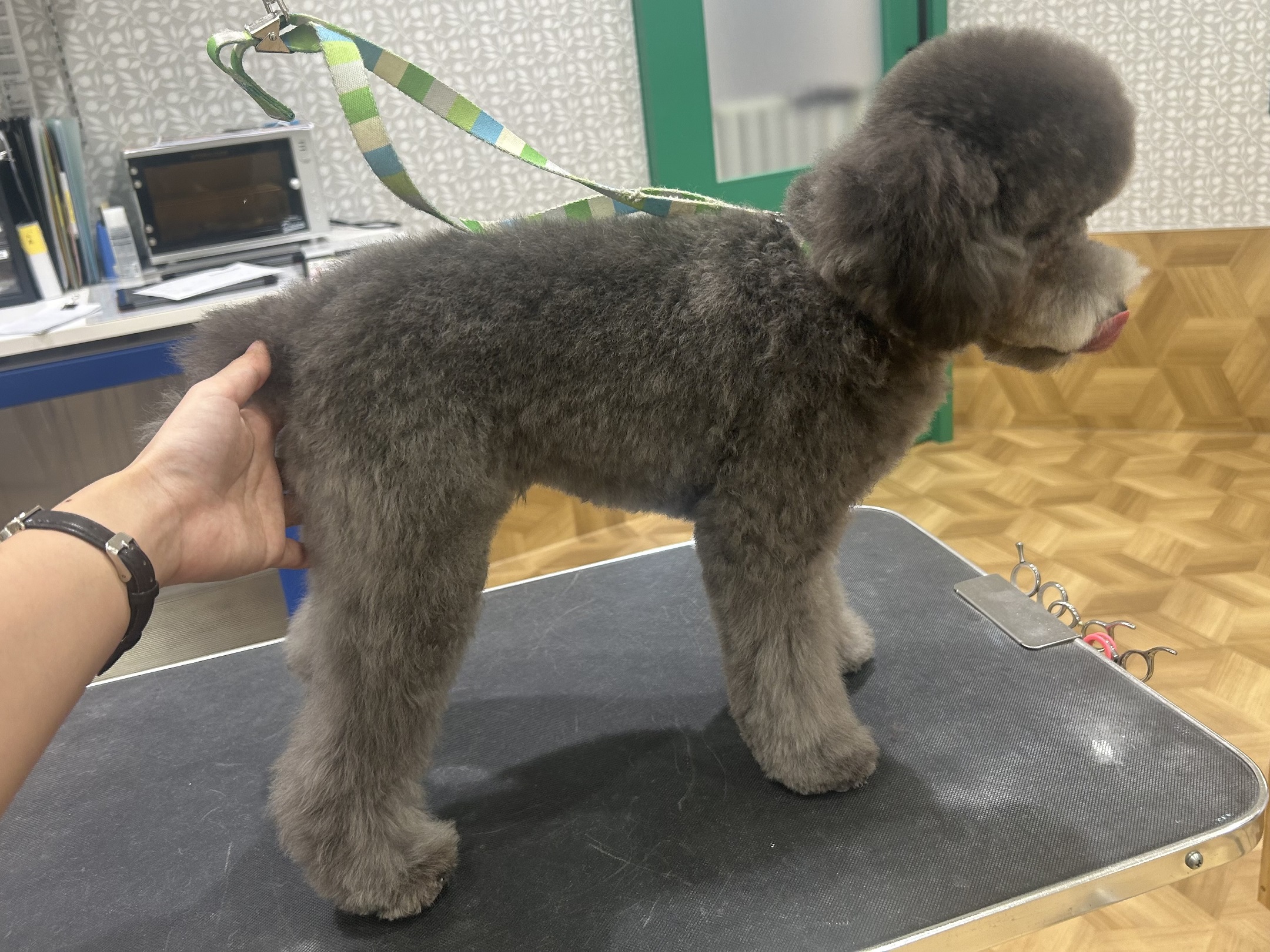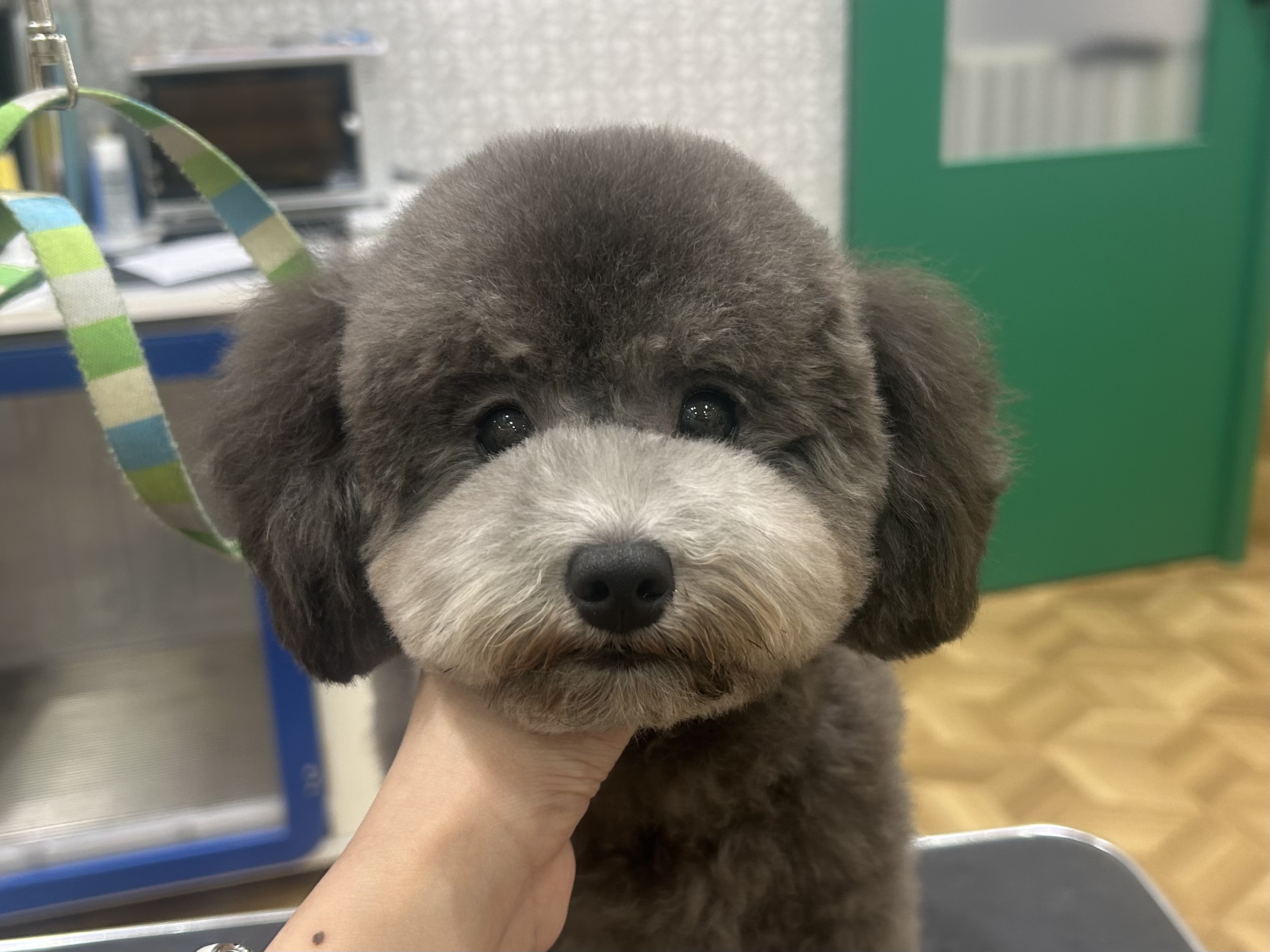 体は19ミリでバリカンを当て、ふんわりとスタイルに仕上げました! お顔も丸くふんわりとしたスタイルに!!