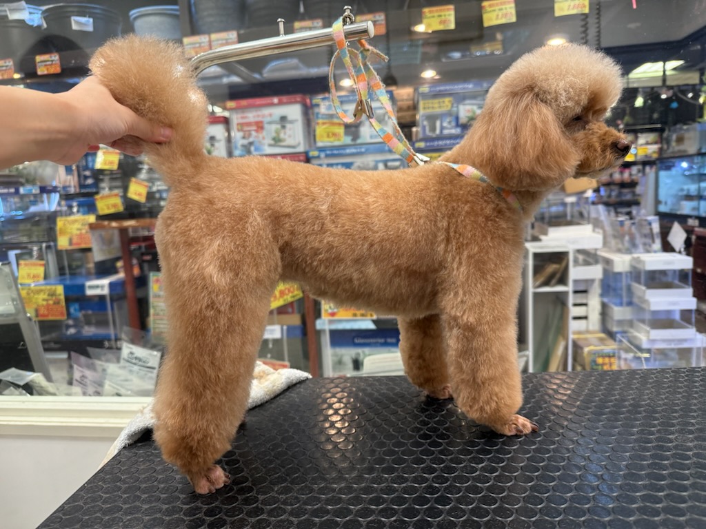 体10mm 足先は1mmでお手入れしやすいように。目元はスッキリ頭はマズルに比べて少し大きくカットし子犬のような可愛さが溢れるカットです♪