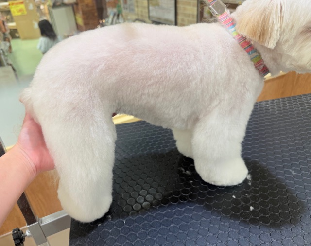 お耳はスッキリと耳型にカットしています。 体は8ミリで足は13ミリを流しあてしてスッキリ目にカットしました。