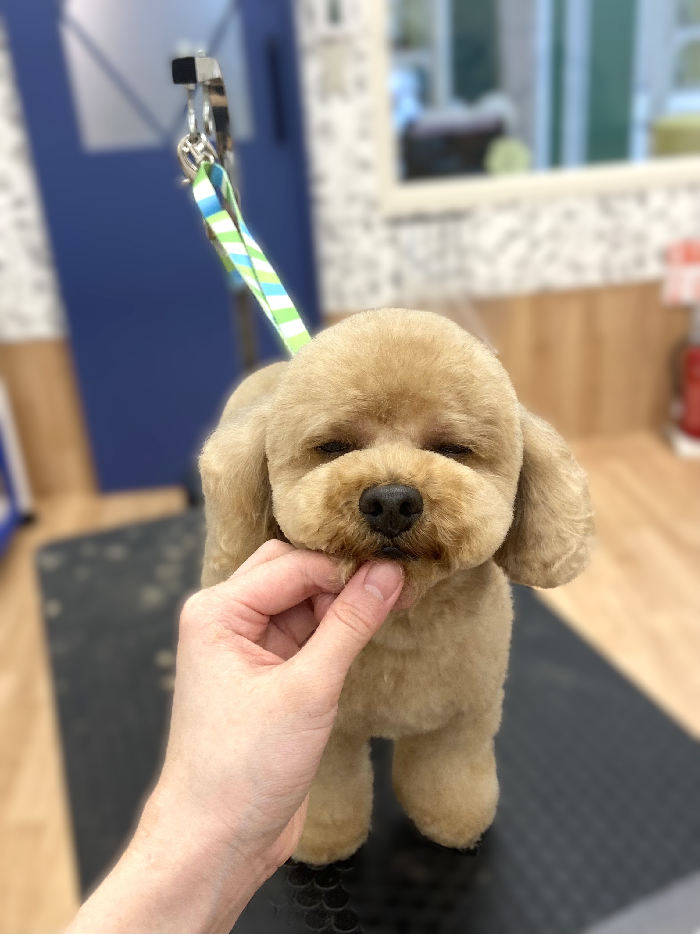 体は9ミリでそれに合わせて足をカットしました。 前後の足の長さが均等になるように意識しました。 顔はふんわりテディベアカットにしました。