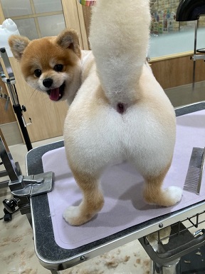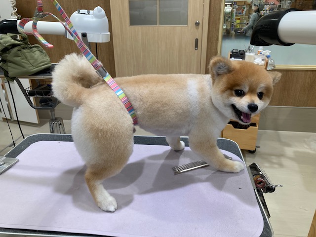 柴カットですが、通常の柴カットよりもほっぺたモチモチお尻ぷりぷりに可愛く仕上げました!とても似合うカットにできたと思います。