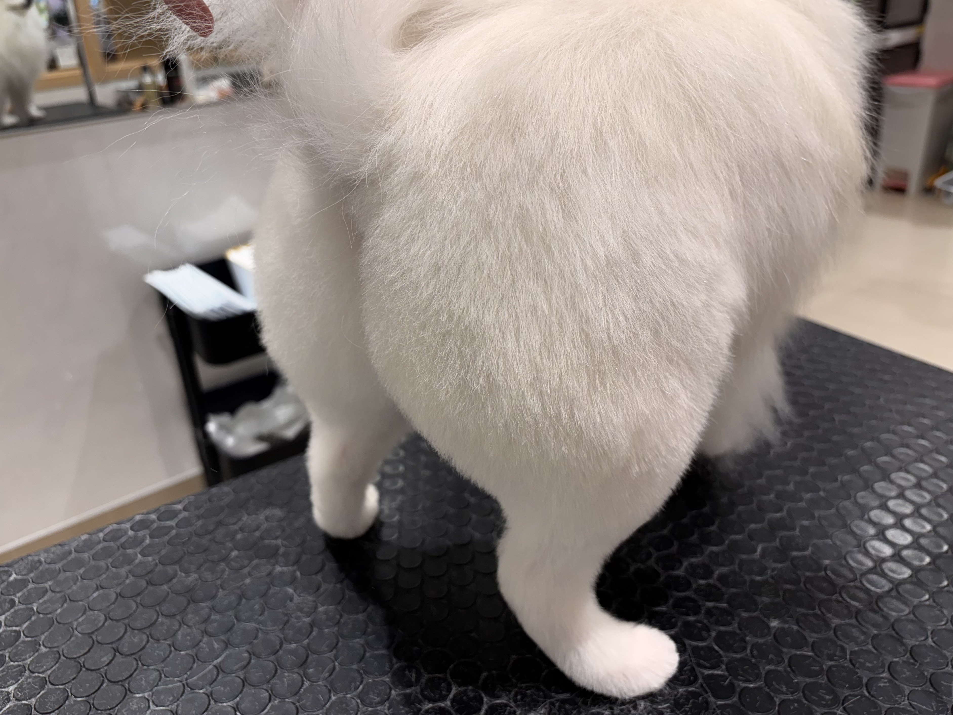 ハサミでコロンと丸くカットしました。 お尻もまあるく桃尻です♪ 横からみてもまるくカットしているところがポイントです!