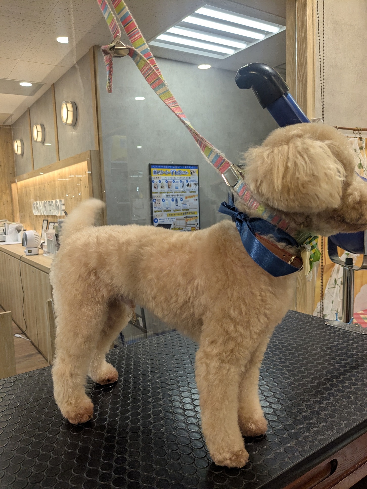 体は8mmのバリカンで刈り、お顔は丸くテディベア、しっぽは短めの棒状にカットしました!