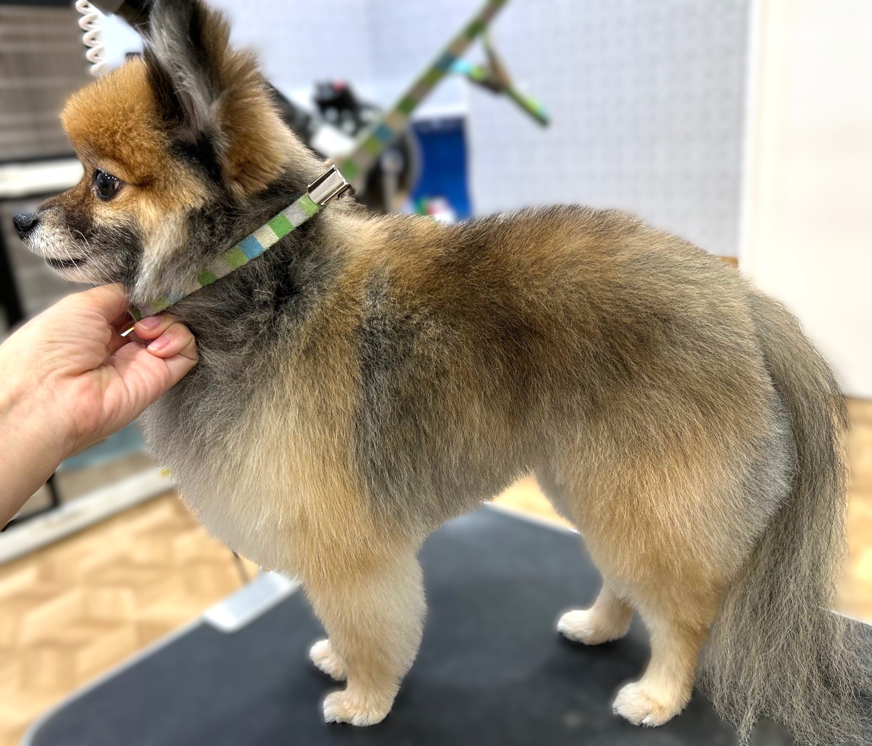 全身をハサミで短めにカットしました! お顔はスッキリ丸くし、 耳も丸くカットしました♪