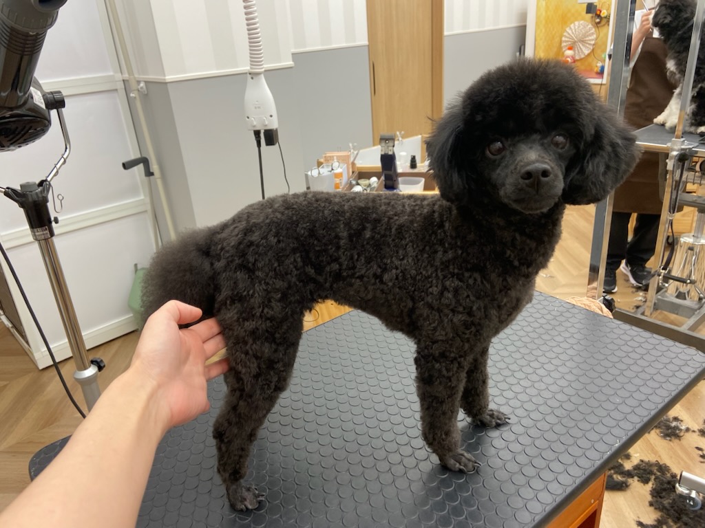 お顔はバリカンで本来のプードルカットに。耳もスッキリ注文だったので10ミリで刈りそろえました。