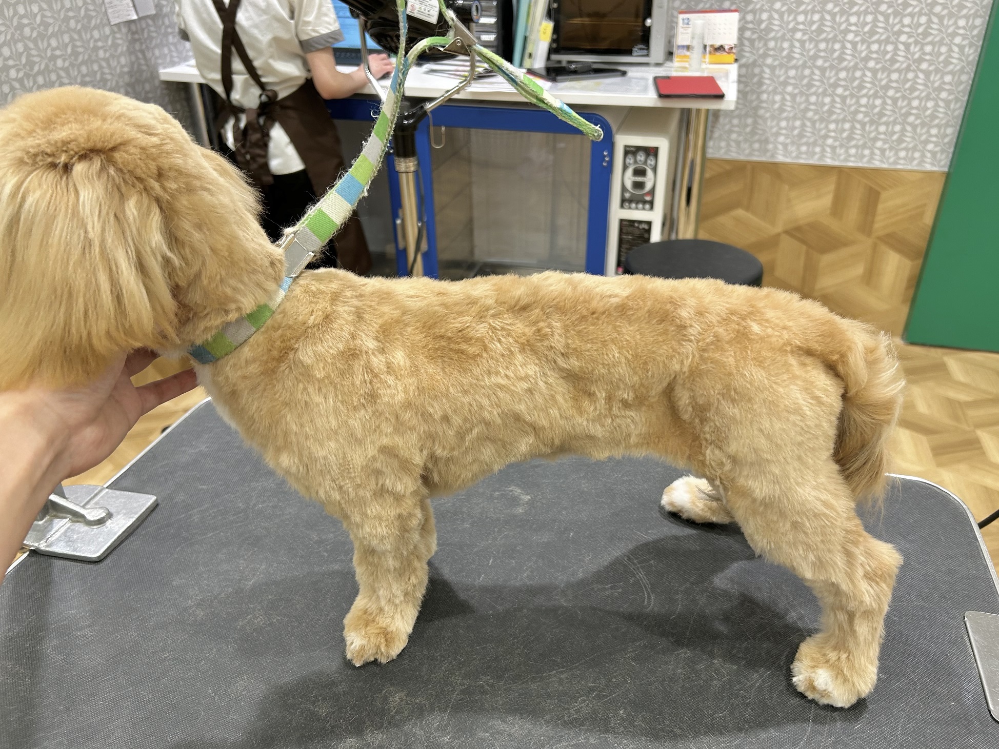 体と足は6ミリのバリカンで刈り、スッキリ!! お顔は全体的に丸くなるようにカットしました♪