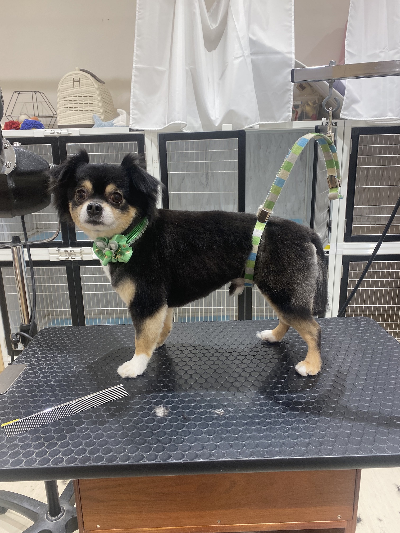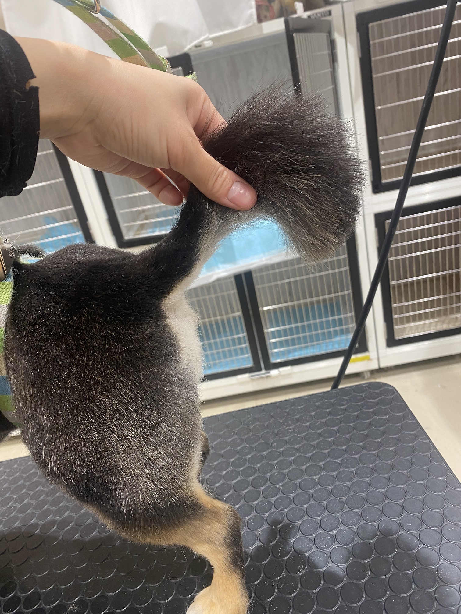 10mmバリカンで全身刈りました。 尻尾はライオン尾で先は丸く切りました。 耳は切らずにのばしていきます。