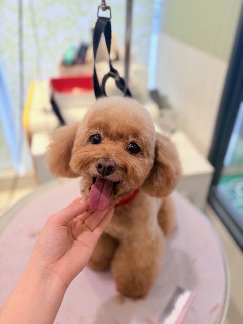 体はサマーカットで足をふんわりしあげました!お顔はテディベアカットにし、丸く可愛く仕上げました♪