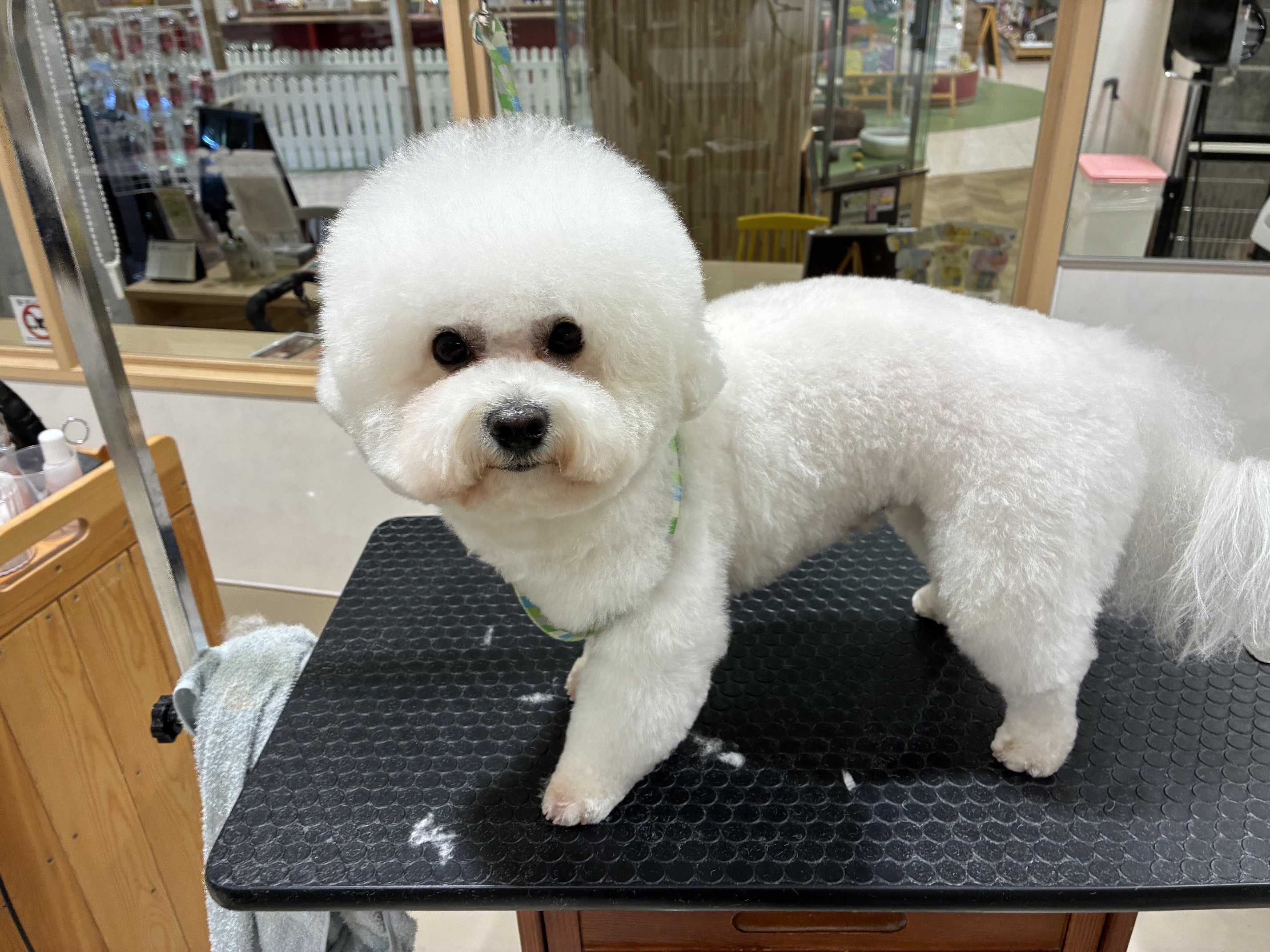 頭のボリュームはなくさずふんわり耳ぴょこ。体16ミリで足はハサミ仕上げ。足元は汚れやすいので短めにカット。
