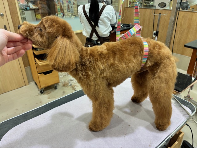 軟毛のテディベアカットです。毛の生え方に合わせてスッキリ仕上げました!体は、10ミリで四肢はハサミでバランスよくカットしました。