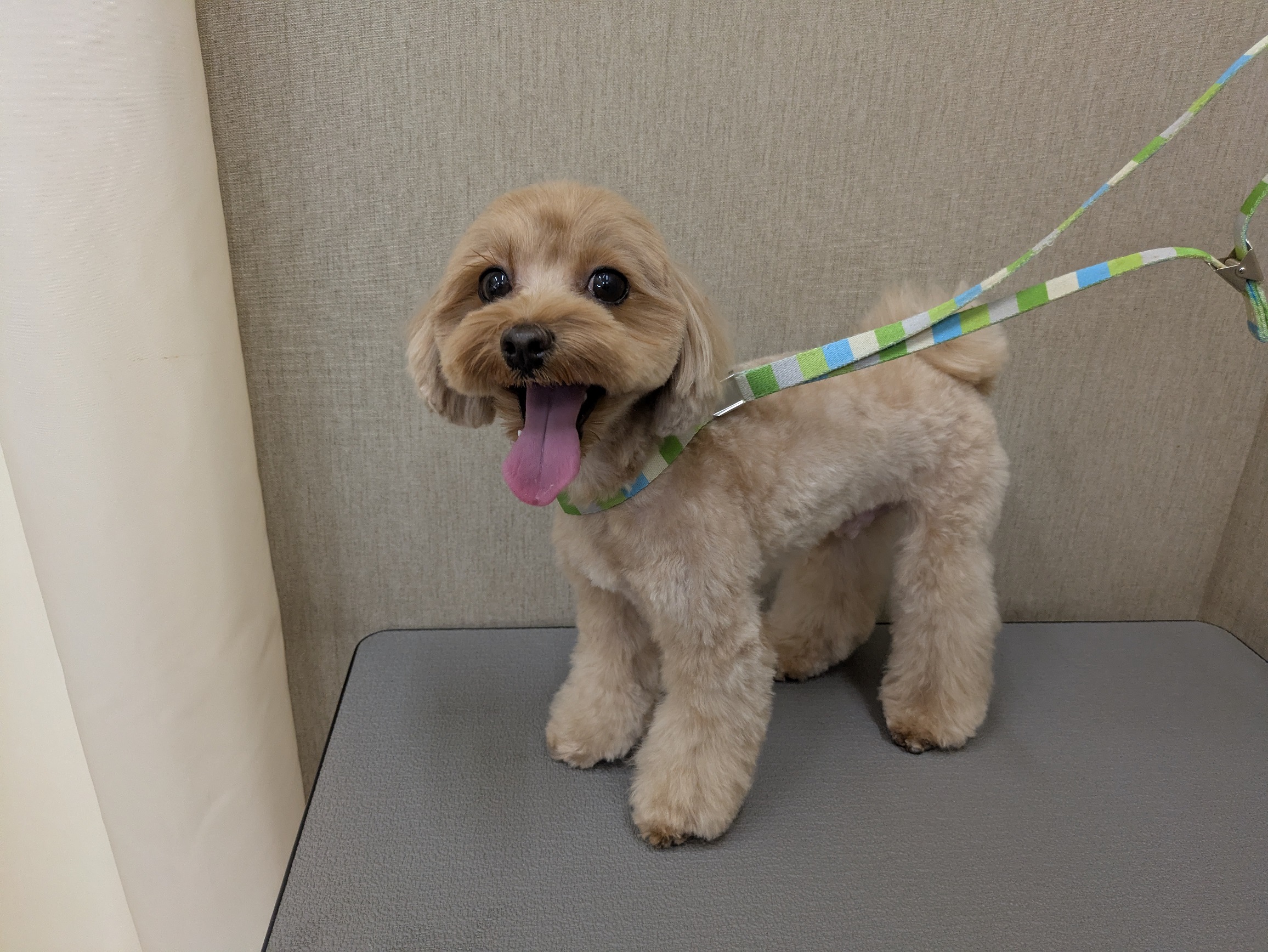 体は8mmでサマーカット 足はふんわりブーツカット お顔は丸くテディベアカット お耳も短く丸くカットしています