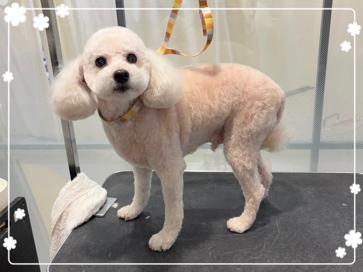 6oバリカンでスッキリサマーカット! 顔は白玉のようにまんまるとかわいらしくカットしました。