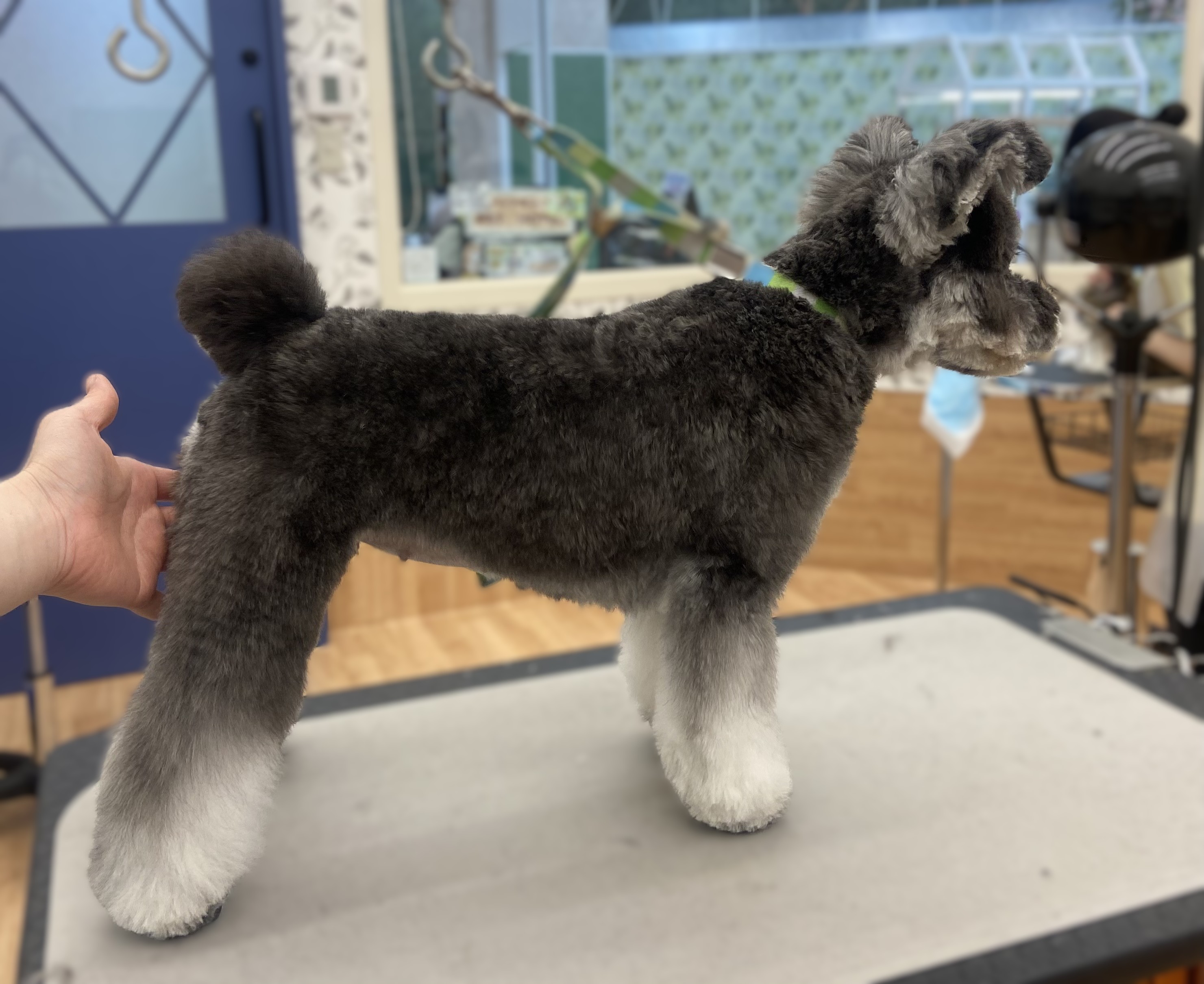 レティちゃんはお顔スッキリ希望なので 横側はスッキリカットしつつ 丸さも残してカットしました。 体は9ミリのバリカンでお手入れしやすいように 短くしています。