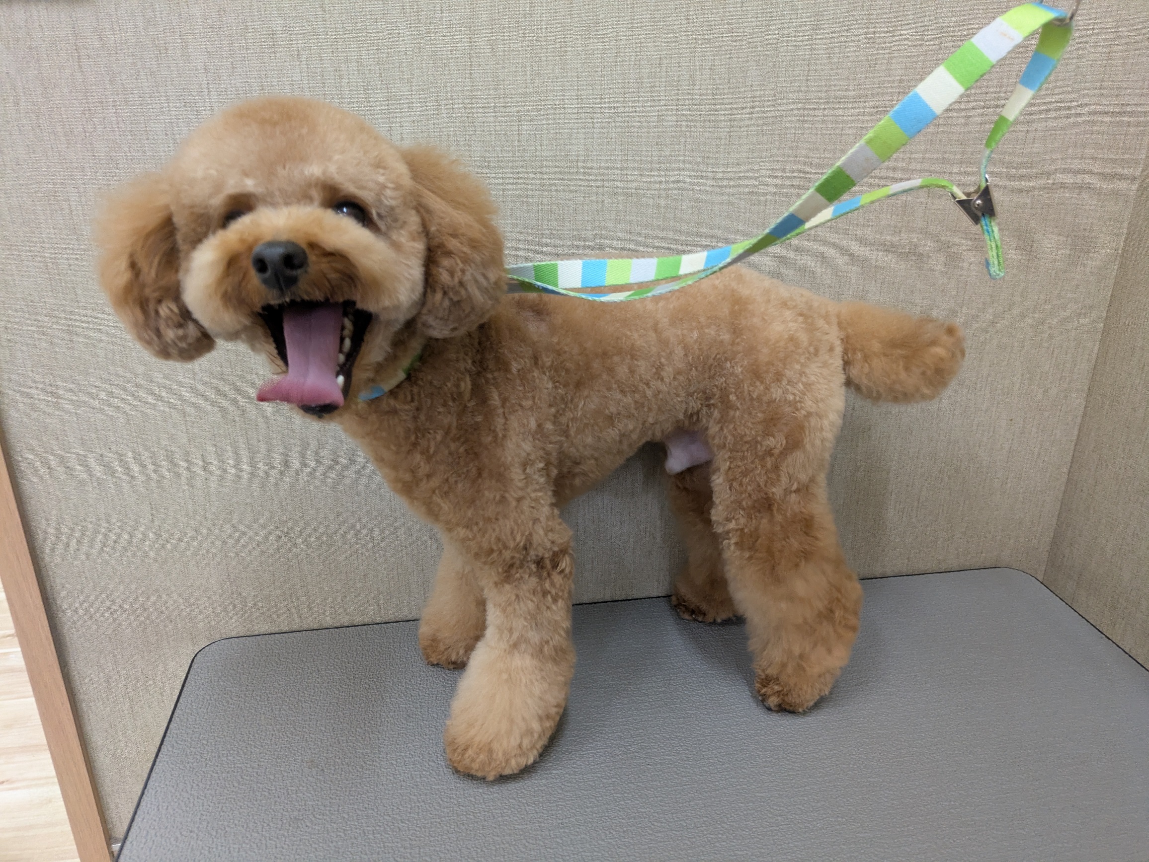 体は8mmでサマーカット 足はふんわりブーツカット 耳と尾は丸くカット お顔は丸くまつ毛も残して テディベアカットにしています。