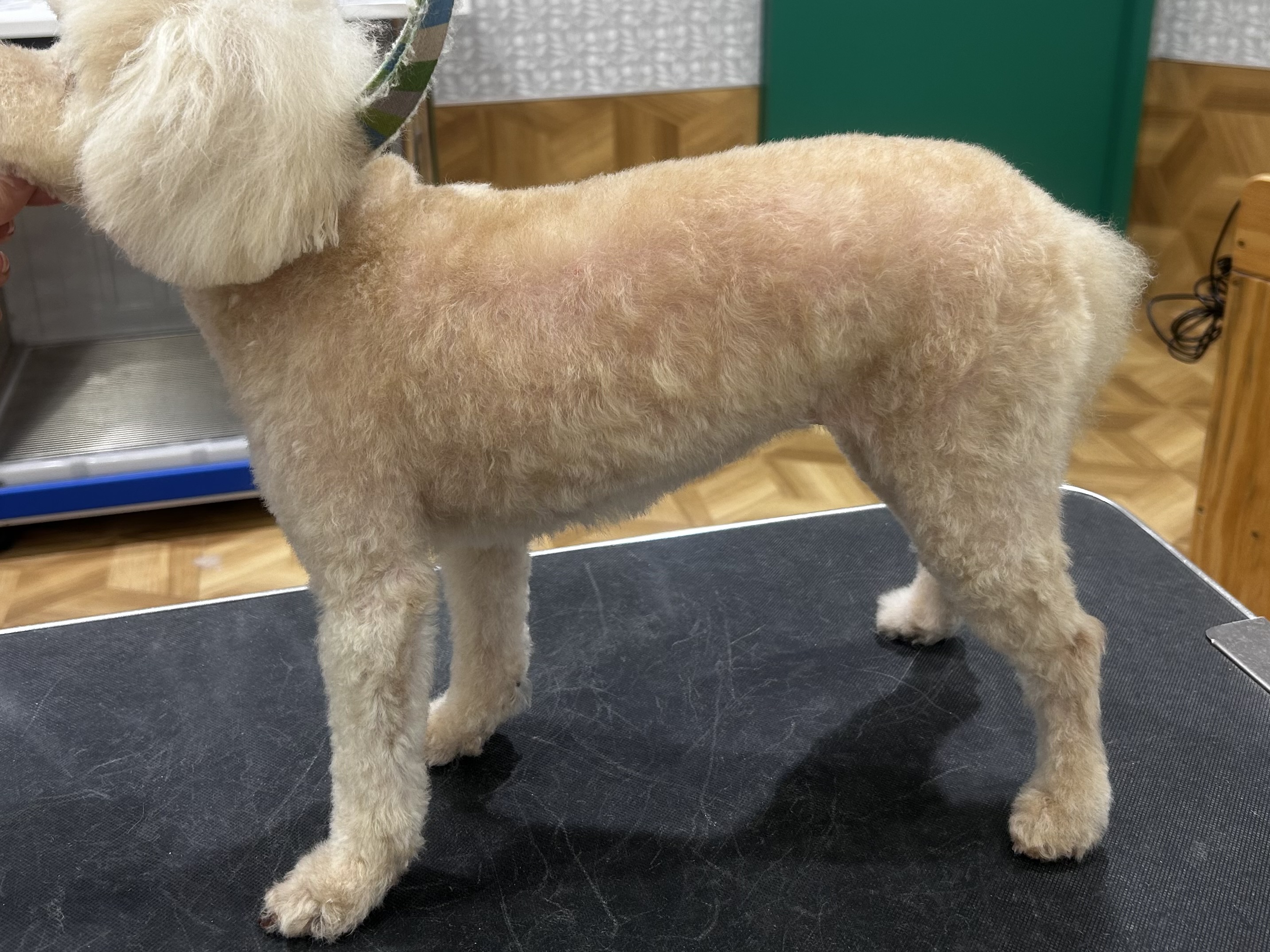 体と足は6ミリのバリカンで刈りました! お顔は丸みとふんわり感を残しつつスッキリ見えるようにカットしました♪