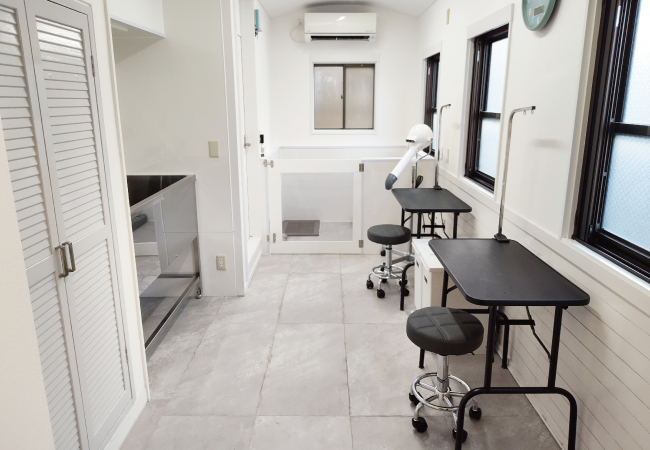 <その子に最適なケアをご提案いたします> カウンセリング時には飼い主さまのご要望はもちろん、その子の性格や体調、苦手な事などもお伺いしております。頂いた情報を基に、出来る限り負担を軽減できるよう柔軟に施術いたしますので、些細な事も気兼ねなくお聞かせください。 年齢に制限は無く、シニアの子も飼い主さまとお話した上で、無理のない範囲でトリミングいたします。まずはご相談ください。 <ワンちゃんへの優しさを重視して選んだオーガニックシャンプー> デリケート肌の子にも安心してご利用いただけるよう、シャンプー剤はオーガニックの製品を取り揃えております。また、きめ細かい泡を出せるシャンプーマシンを導入し、皮膚に負担を掛ける事なく優しく汚れを洗い流します。 爪切りや耳掃除、肛門腺絞りといった単品メニューもございますので、ご自宅でのケアが難しい方はぜひプロにお任せください。 <1頭1頭のペースを大切にお預かりいたします> 始めて来店したワンちゃんのなかには緊張している様子の子もいるため、すぐに施術台の上に乗せる事はしません。まずはスタッフと一緒に遊んだり、店内を散策してもらったりして、少しずつサロンの雰囲気に慣れてもらえるよう配慮しています。 トリミング後は可愛く綺麗になった姿を記念撮影し、ご希望があればお店の公式LINEからお写真データをプレゼントいたします。 また、お迎えが来るまでフリースペースでのんびりと過ごしてもらっています。 <お出かけの際はペットホテルをご利用ください> 併設のペットホテルでは、宿泊だけでなく、一時預かりや長期預かりにも対応しています。サロンと同様、小型から大型の幅広いワンちゃんとネコちゃんを受け入れており、動物好きのスタッフが1頭1頭愛情込めてお世話させていただきます。 ホテルスペースは広々としているためお預かりできる頭数も多いですし、ワンちゃんのお部屋はその子の大きさに合わせて使い分けられるよう3種類のサイズがございます。隣のワンちゃんが気になりにくい個室タイプのお部屋のため、繊細な子もリラックスしてお過ごしいただけます。