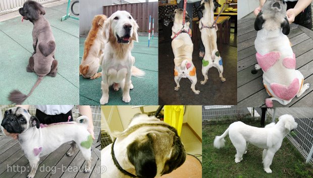 綱吉の湯では小型犬から大型犬、短毛種から長毛種までデザインカットを受付ております。おもしろカット、かわいいカットなど、お気軽にご相談ください。(価格応相談)